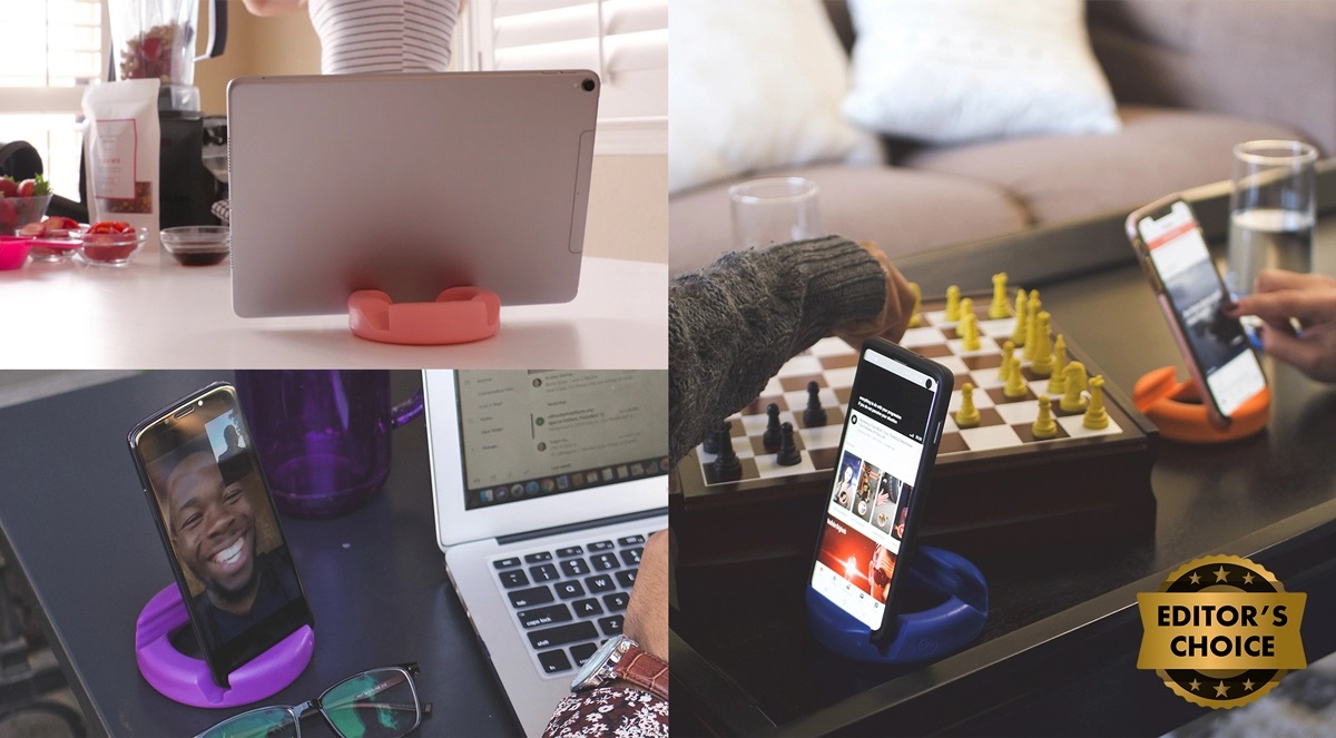 The GoDonut is the most universal AND most useful balancing stand for your phone, iPad, whatever it is you want to use. More than 90% of its customers have given it a five-star rating, they are so obsessed.